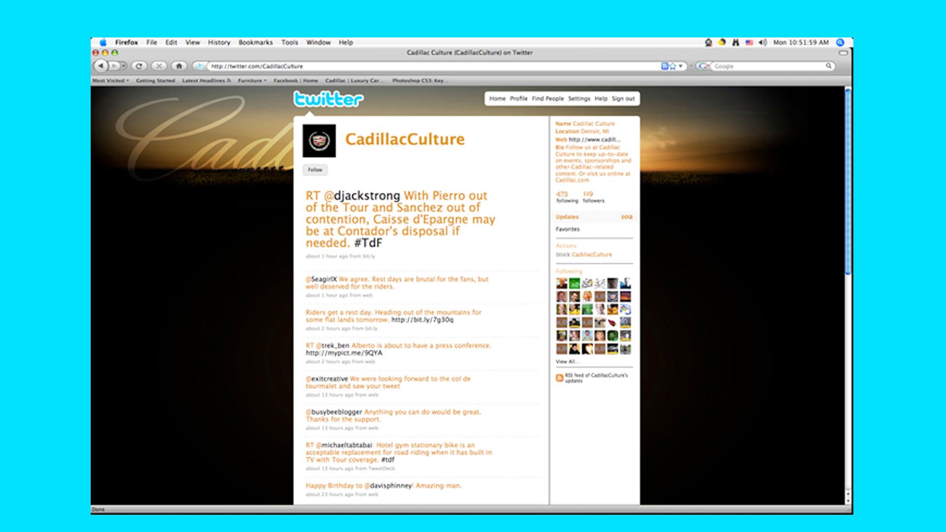 Visual designs for a Cadillac-owner-specific iOS app, Cadillac.com, and Cadillac twitter page.