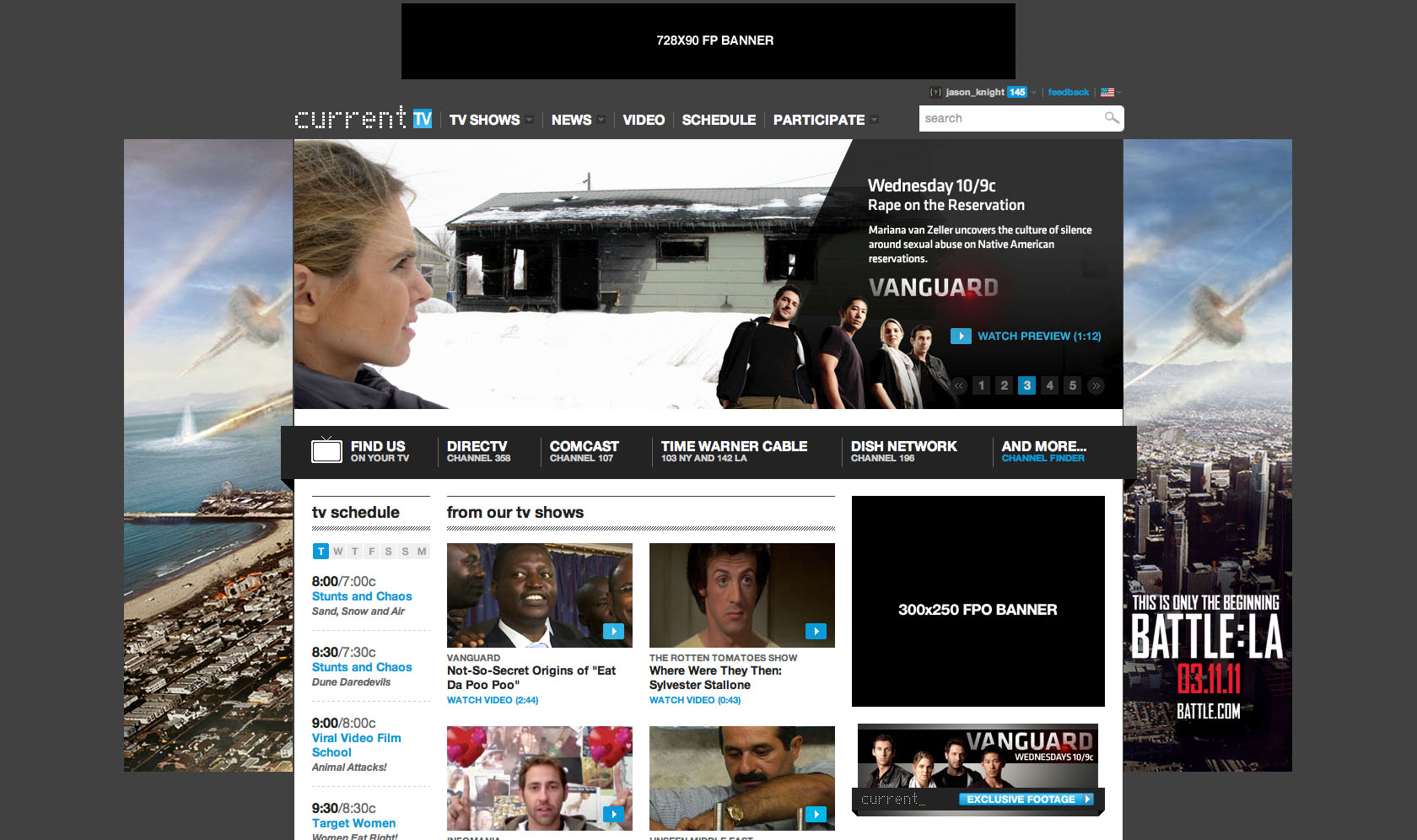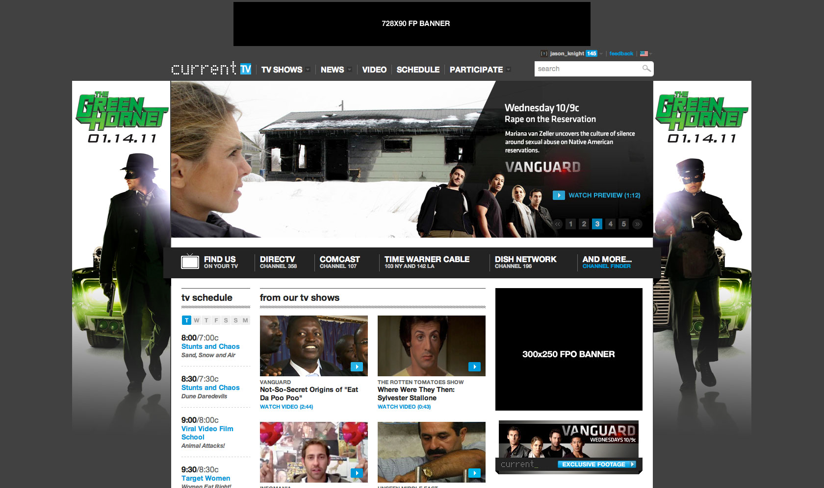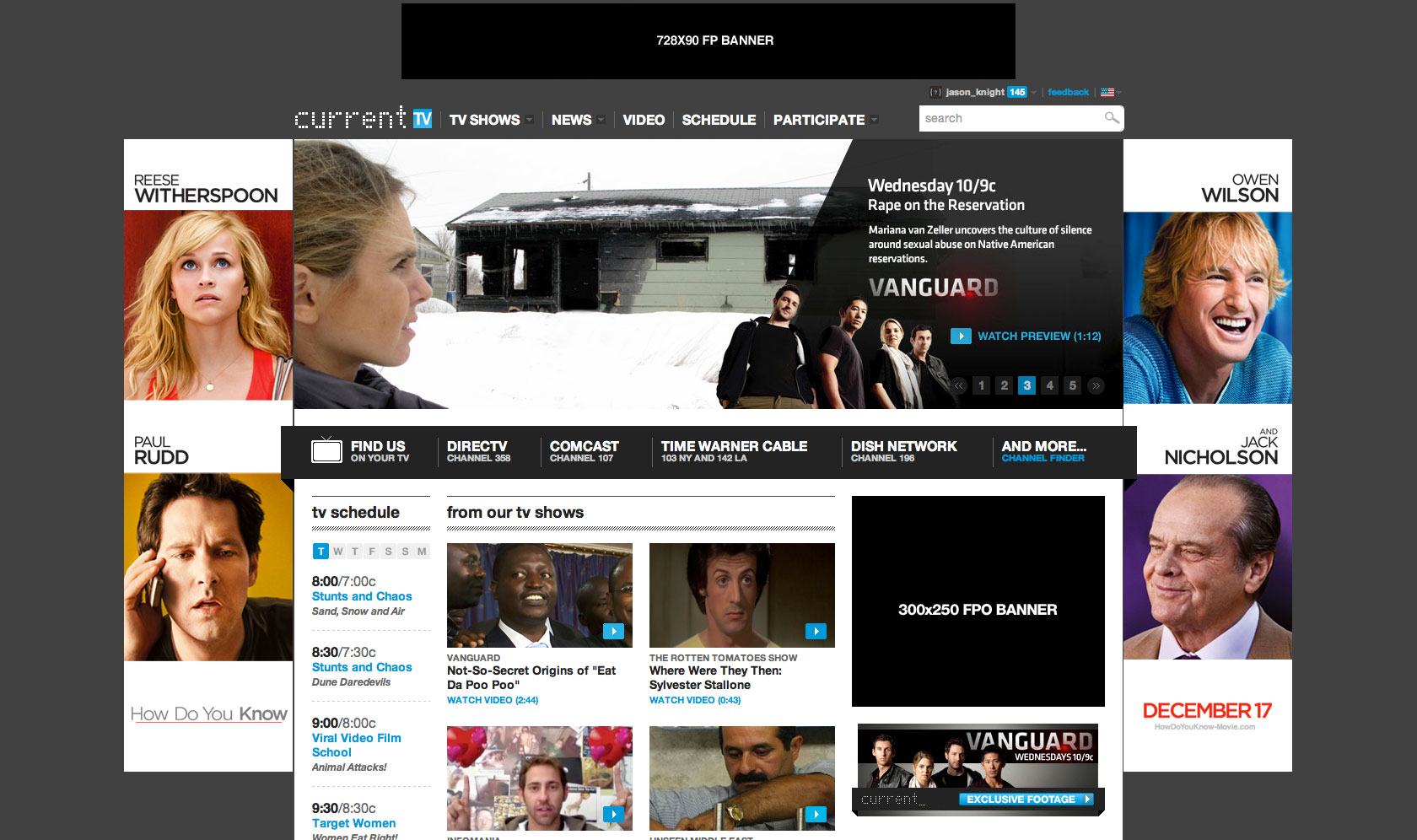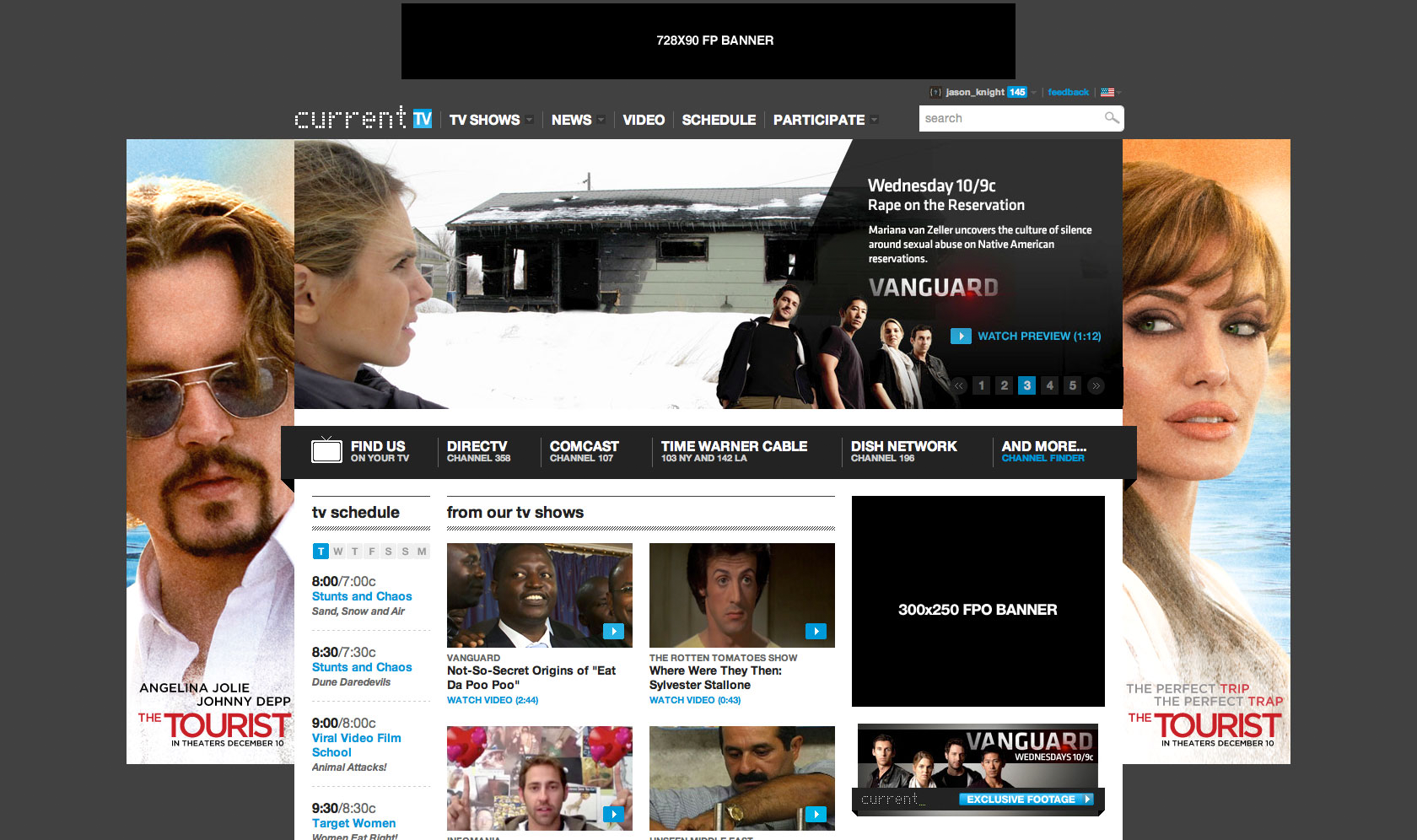 Show Pages, Homepage Takeovers, and advertisements for Current TV Interactive